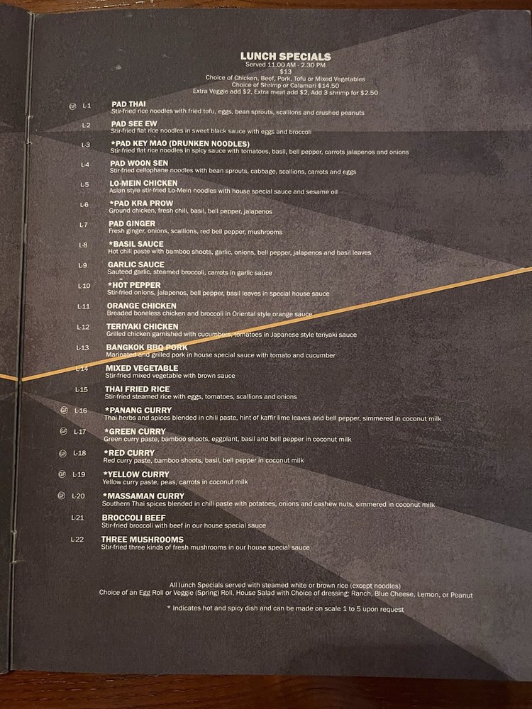 Spice, a Thai restaurant located in Fort Worth, TX, offers a variety of noodle dishes with a focus on traditional flavors. From the popular Pad Thai to the spicy Pad Key Mao, their lunch specials are sure to satisfy any craving. Customers rave about the flavorful Red Curry and the customizable options, such as extra bean sprouts and no green onions. The restaurant provides a cozy ambiance, making it perfect for both casual lunches and business dinners. With friendly service and generous portions, Spice is a go-to spot for authentic Thai cuisine. Whether you're craving crispy spring rolls or rich Massaman Curry, every bite is a delight at Spice. Don't miss out on their lunch specials, which leave you feeling satisfied and coming back for more.